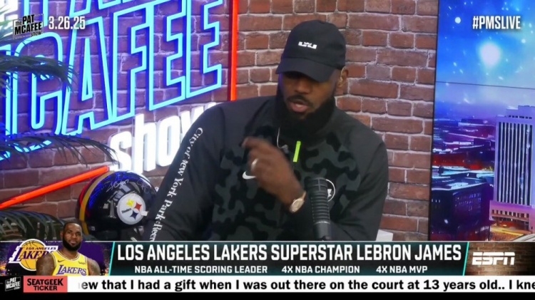 3月27日讯 近日,湖人前锋詹姆斯接受了播客节目《The Pat McAfee Show》的采访。