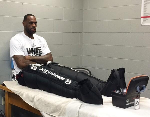 查尔莫斯:“说实话,我想到了。我一直跟人这么说,就算我们去了夜店,勒布朗也会按时完成他的理疗。就是他哪怕人在夜店里也会在膝盖或者腰部上套着某些理疗设备,如果有人在夜店里都不忘做理疗,那真的是展现敬业精神。不是缠冰袋,他用的是那种给你的膝盖、腿筋和腰部注入电脉冲的理疗仪器,他总是在使用一些玩意儿来促进身体恢复。一旦你看到那种场景,那就是与众不同的敬业精神,我必须对此脱帽致敬。”