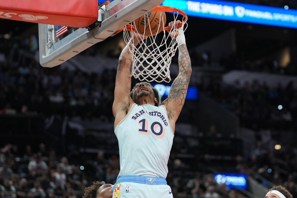 2024-25赛季,索汉为马刺出战54场常规赛,场均上场25.3分钟可以得到11.4分6.5篮板2.4助攻。