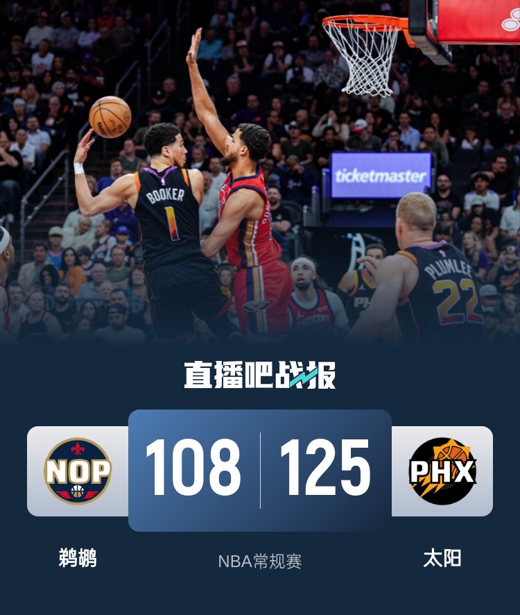 3月1日讯 NBA常规赛今日继续开打,太阳今日坐镇主场迎来和鹈鹕背靠背的第二场对决。上一场比赛太阳8分不敌鹈鹕遭遇3连败;本场比赛鹈鹕双核锡安和麦科勒姆双双缺阵。