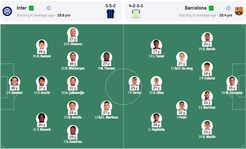 本场比赛,这群“老男孩”排出的首发阵容平均年龄为29.8岁,而巴萨这边的平均年龄为25.4岁。