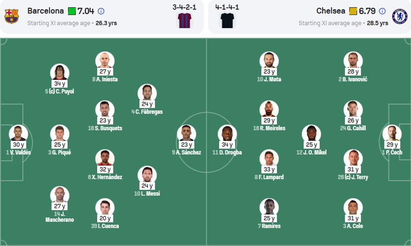 彼时的切尔西半决赛的对手正是巴萨,次回合排出的首发阵容,平均年龄高达28.5岁,凭借着托雷斯进球锁定胜局,晋级决赛。