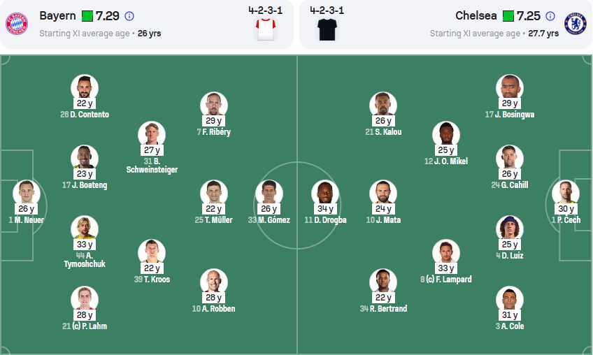 在决赛中,他们排出了平均年龄为27.7岁的首发阵容,德罗巴绝平,最终点球战胜拜仁。