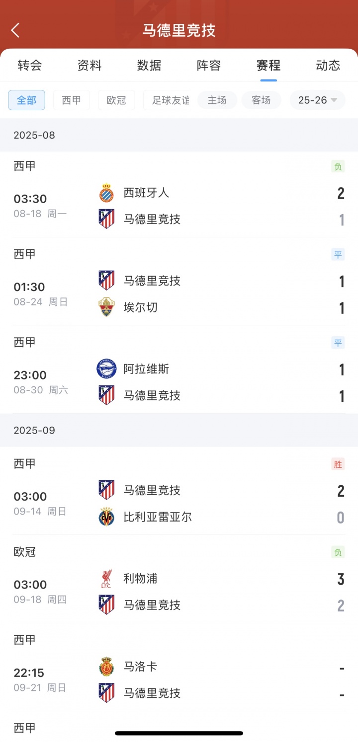 马竞本赛季开局不利,西甲1胜2平1负仅积5分排在第11,各赛事5场仅取1胜。
